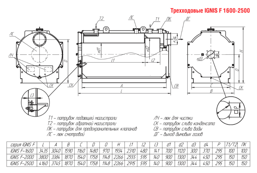 Технические характеристики водогрейного трёхходового котла ARCUS IGNIS F-1600
