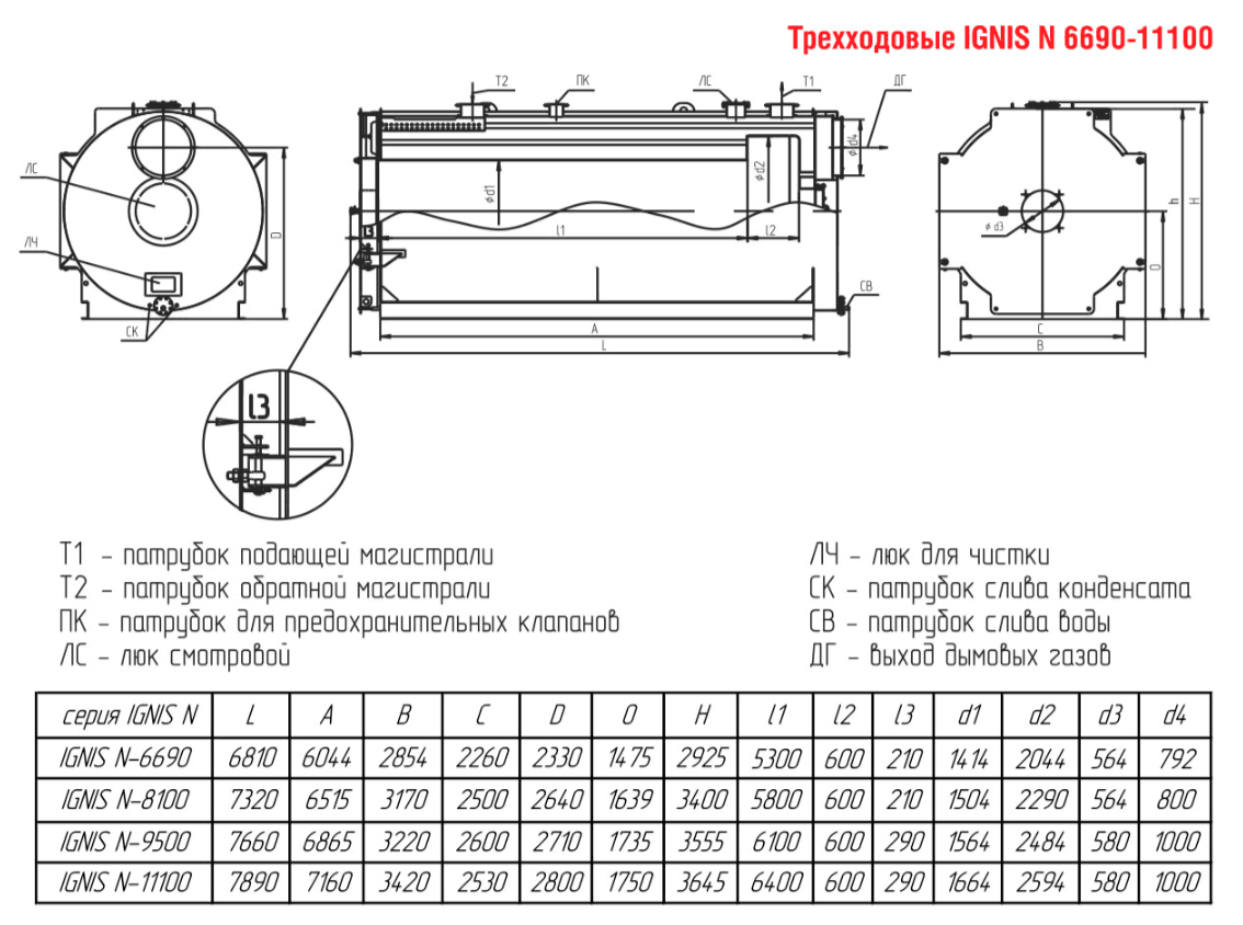 Технические характеристики водогрейного трёхходового котла для тепличных хозяйств ARCUS IGNIS N-9500